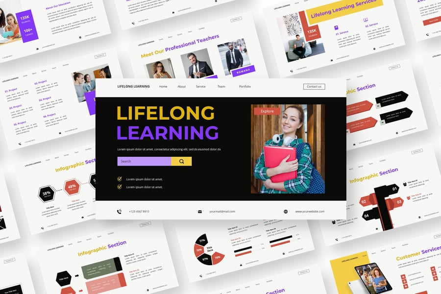 此演示文稿模板可用于各种用途,例如:紫色、终身学习、学校、教育、学习、课堂、学生、书籍、知识、大学、培训、科学、课程、教学、教室、教师、技术、学院、书店、电子书、笔记本、演示文稿、公司、简介、作品集、模板、信息图表、演示文稿、PowerPoint、Keynote、Google Slides、幻灯片,也可用于个人作品集。