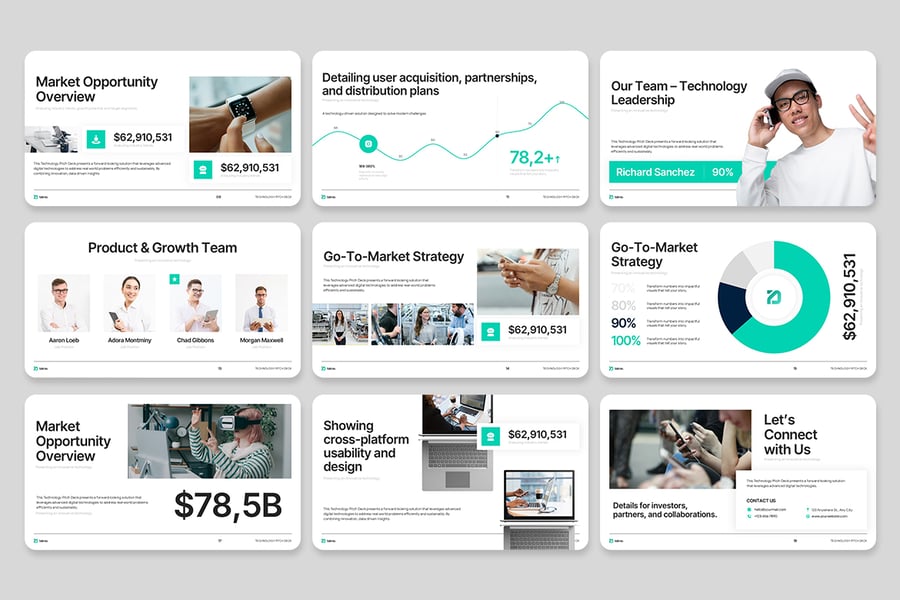 隆重推出**科技路演演示文稿模板**——打造令人印象深刻、直击投资者心目中的理想演示文稿的终极解决方案。这款高级模板专为初创公司、科技创新者、创始人及商业人士设计,融合了策略性叙事、前沿现代设计以及对细节的精益求精,助您自信地推介创意、成功获得融资,并以清晰流畅的风格传达您的愿景。