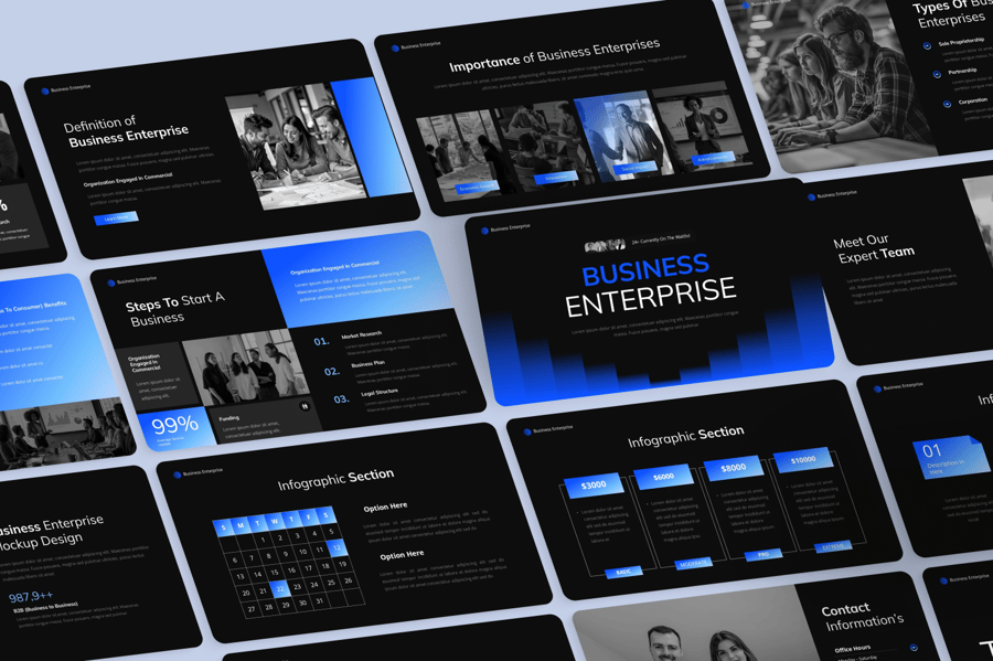 这款专业设计的演示文稿模板将助您提升商务沟通效率。专为高管、经理和业务拓展人员量身打造,该模板可帮助您创建视觉效果惊艳、高效的演示文稿,吸引眼球并推动业绩增长。其结构清晰又不失现代感的设计,确保您的信息能够清晰有力地传达。