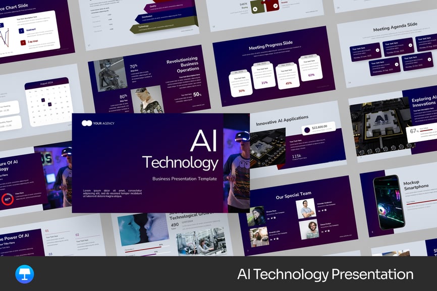 “人工智能技术主题演讲”是一个动态且引人入胜的模板,专为希望展示人工智能在各行各业变革性影响的专业人士、教育工作者和创新者而设计。该演讲有助于以清晰且令人信服的方式传达复杂的人工智能概念和应用。