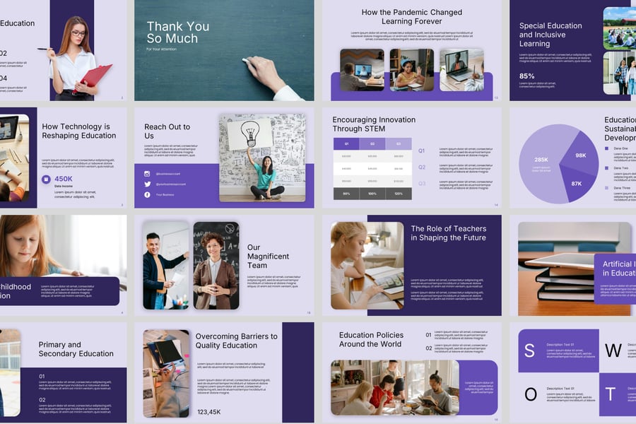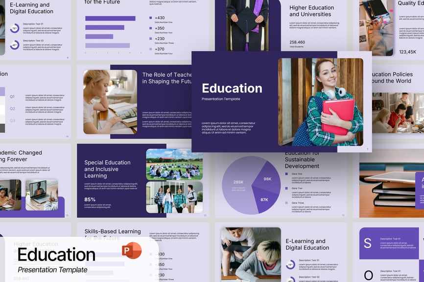 这款专为教育领域设计的 PowerPoint 模板,旨在帮助您清晰、详尽地进行演示。该教育演示模板适用于教育工作者、学术机构、培训师和学生,用于展示教育主题、研究成果、课程计划和学习策略。无论用于课堂教学、学术会议还是在线课程,此模板都能以结构化且引人入胜的方式传达教育内容。