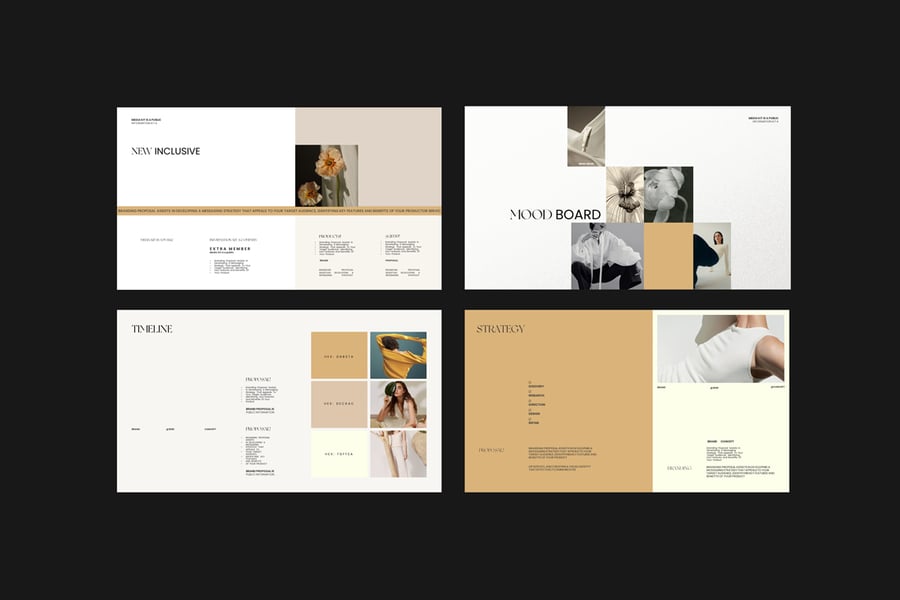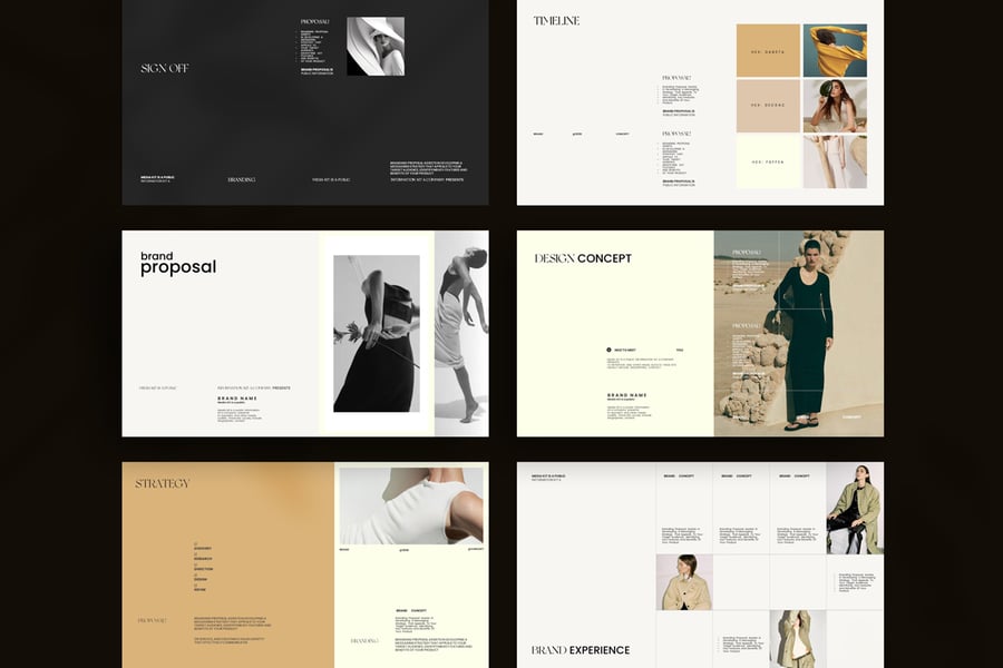 任务,助您轻松创建清晰简洁的品牌提案演示文稿。借助此品牌指南模板