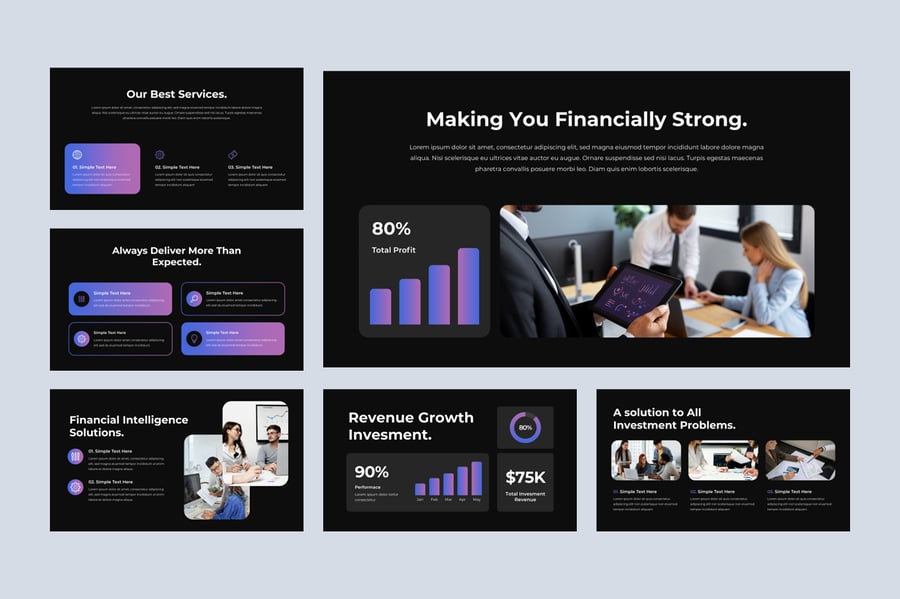 此演示模板可用于各种用途,例如:金融、房地产、银行、公司简介、企业、代理机构、广告、数字营销、商业计划、提案、路演、技术、工作室、项目、多用途、创业公司、行业,也可用于个人作品集。