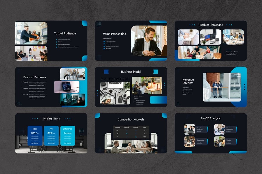 此演示模板可用于各种用途,例如:创意机构、公司简介、企业和商业、作品集、摄影、路演演示文稿、初创公司,也可用于个人作品集。