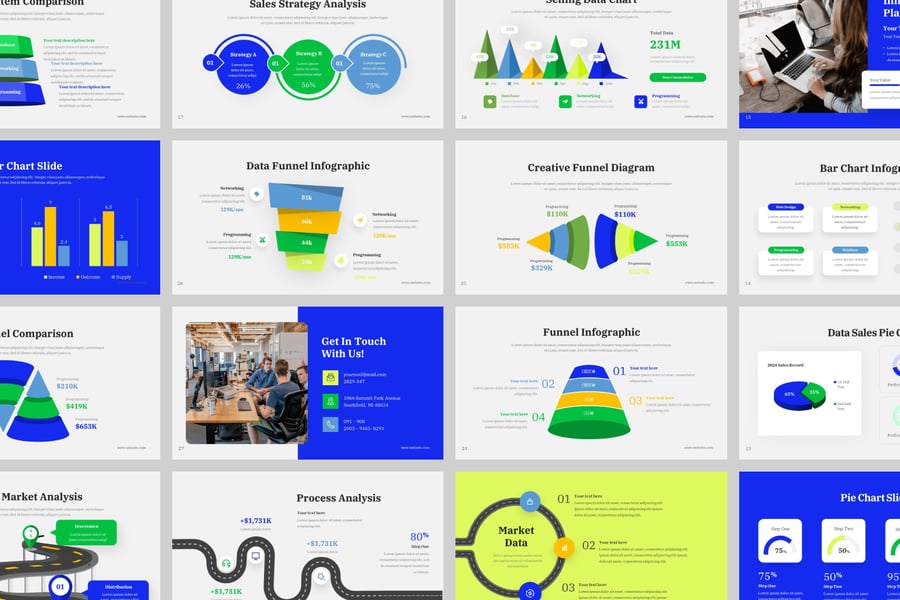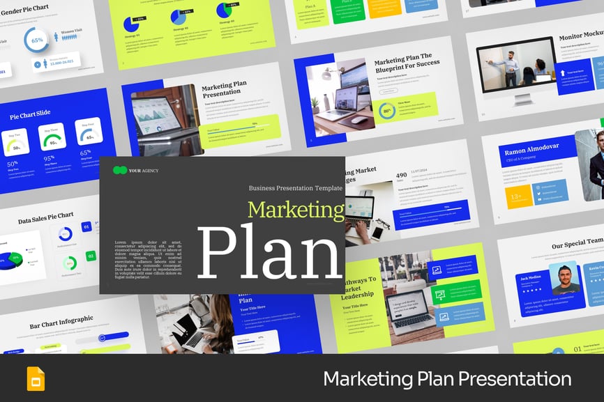 这款营销计划 Google 幻灯片演示文稿模板内容全面,视觉效果出色,旨在帮助营销人员、企业主和顾问清晰有效地阐述其营销策略。无论您是向利益相关者、团队成员还是客户进行演示,此演示文稿都包含您有效传达营销计划所需的一切。