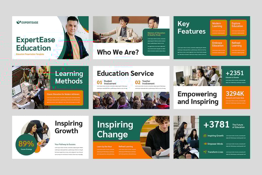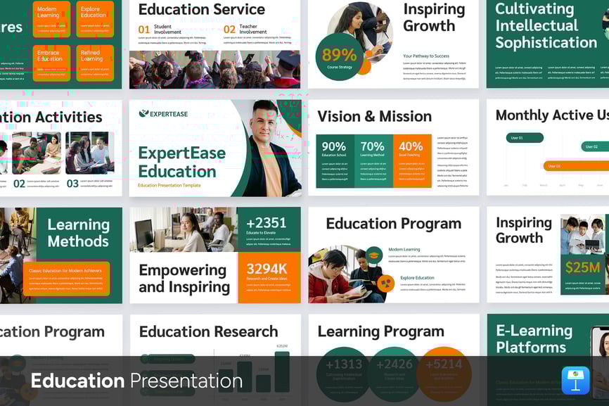 **教育演示** 专业多用途演示模板。内置 16:9 (高清) 比例。简洁、现代、易于编辑。完美适用于您的企业、学校、学院、教育机构和推广活动。