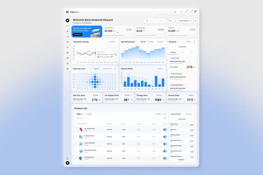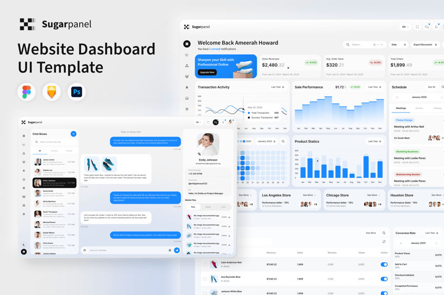 SugarPanel UI Kit 网站模板适用于帮助您为您的网站设计后台管理分析仪表盘和面板。