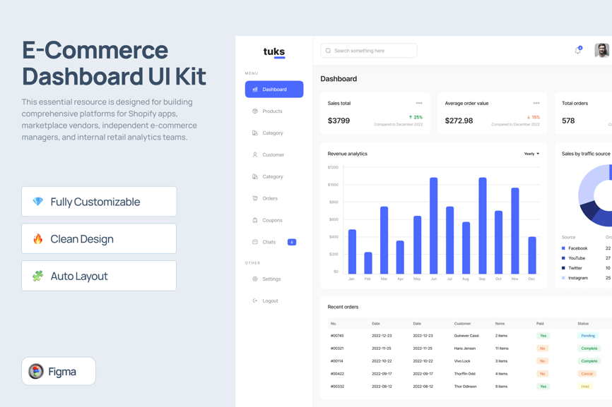 电子商务仪表盘 UI 套件 – Tuks