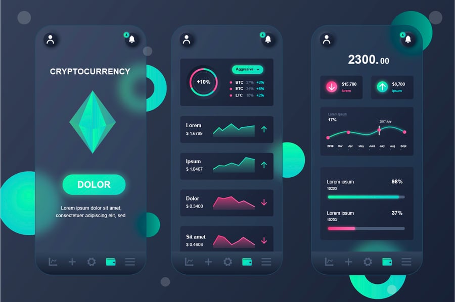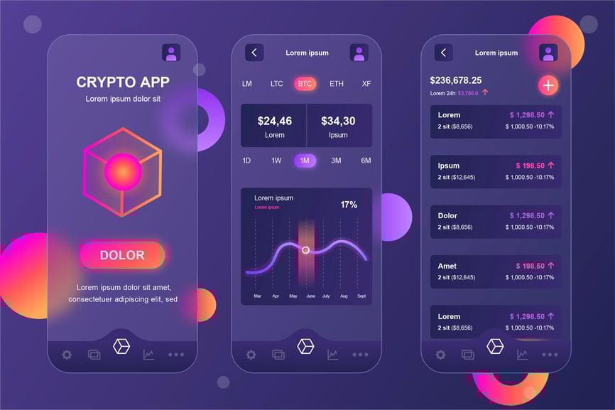 加密货币 Glassmorphic 移动应用 UI 套件