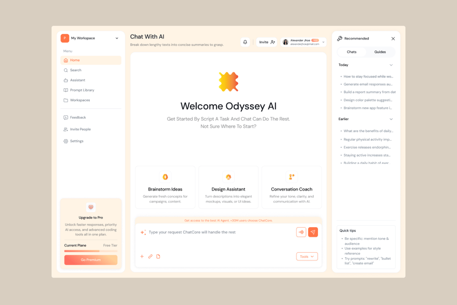 Kairo 是一款简洁现代的 AI 聊天仪表盘 UI 套件,旨在支持强大的对话体验。Kairo 专为帮助用户集思广益、管理任务、生成内容或简化日常工作流程的平台而打造,提供高度直观的布局和专为 AI 交互量身定制的功能组件。