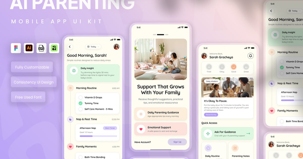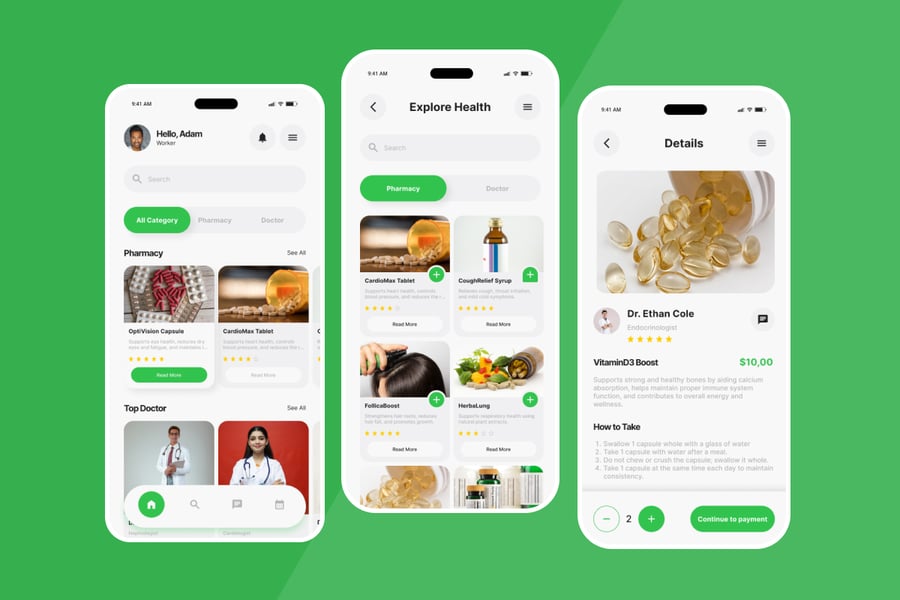 打造安全可靠的健康监测环境,设计语言体现安全感和专业关怀。这款 UI 套件是艺术总监和移动设计师的理想之选,它采用简洁的高对比度字体系统和宽敞的卡片式布局,确保最终用户能够轻松理解所有医疗信息。将复杂的医疗保健数据转化为友好易用的移动体验,从而提升用户长期参与度,并增强现代数字医疗服务的可信度。