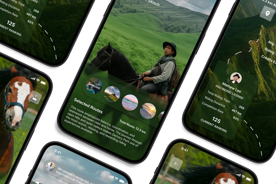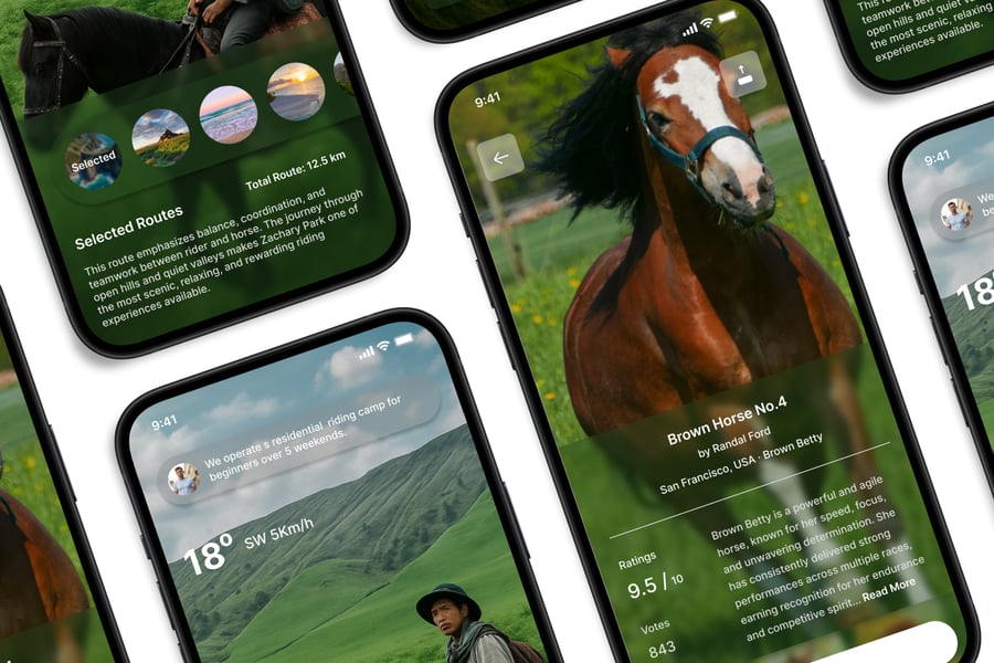 这款**骑马主题** UI 套件的设计重点在于易用性和一致性,让您轻松打造美观实用的移动应用。每个元素都经过精心设计,完全可定制,并可根据您的品牌进行调整。无论您是设计社交应用、电商应用还是效率工具,这款套件都能让您灵活自如地将创意变为现实。