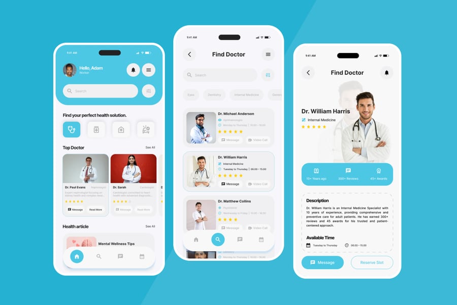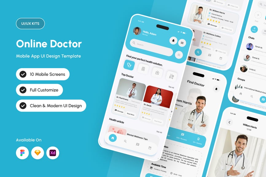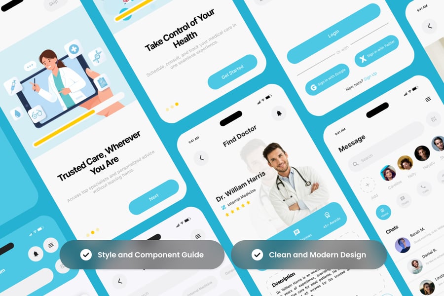 这款工具包采用简洁的布局,以清晰易懂的界面和舒适的用户体验为核心,助您提升医疗保健设计工作流程。对于希望打造现代临床用户界面的平面设计师而言,它摒弃了过于张扬的色彩,转而采用舒缓、可靠的色调,无疑是专业之选。该工具包经过精心设计,旨在简化从预约到处方管理的整个用户流程,凭借其卓越的易读性和以人为本的用户体验,确保您的移动应用在竞争激烈的健康市场中脱颖而出。