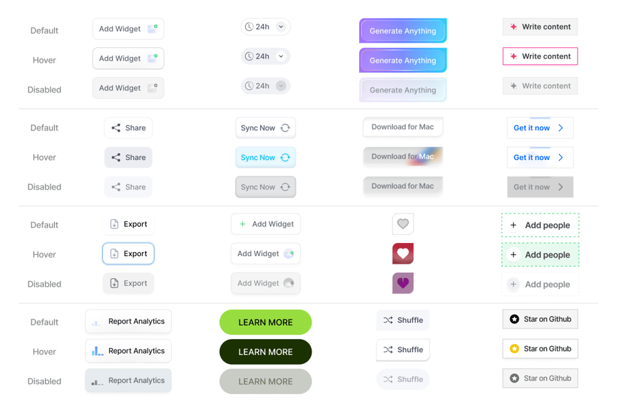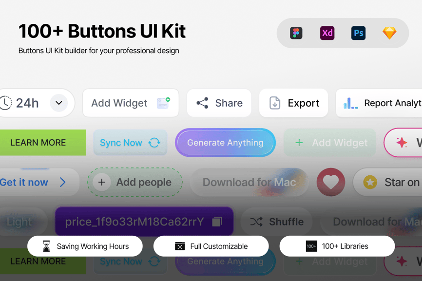 – 超过 100 个即用型按钮组件