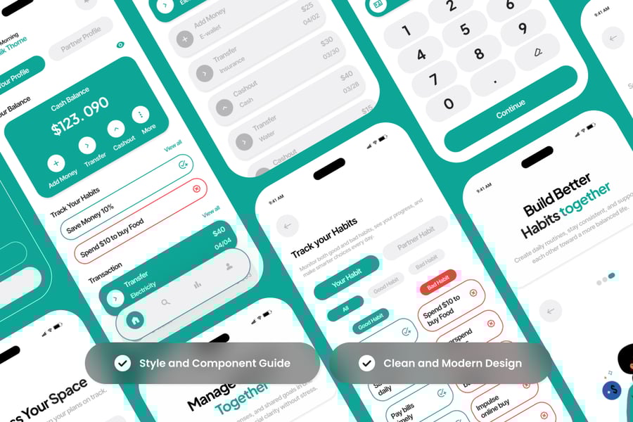 这款设计套件以精致的移动界面为核心,融合了高端的版面布局和实用的卡片式设计,旨在帮助伴侣同步生活。它以“和谐双人”配色方案为中心,营造财务上的安心感和情感上的安全感,并以艺术化的环形图和交互式3D成长图取代传统的图表。通过关注共同的进度指标和情感上的激励,设计师能够为客户提供前沿的金融科技体验,通过精心设计的触觉系统,庆祝里程碑式的成就,并鼓励可持续习惯的养成。