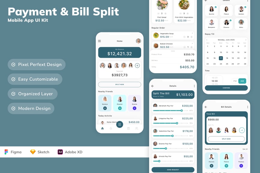 支付和账单拆分移动应用 UI 套件