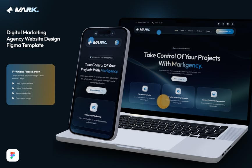 Figma 数字营销机构网站设计 UI 是一套完整而现代的网站布局合集,专为数字机构、创意工作室、SEO 机构、社交媒体营销机构、品牌推广机构以及任何专业服务型企业而设计。