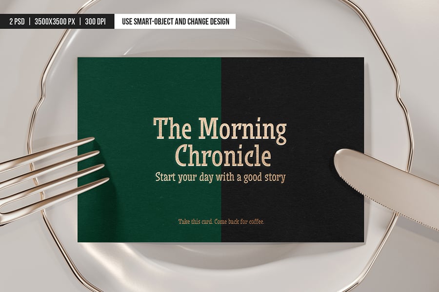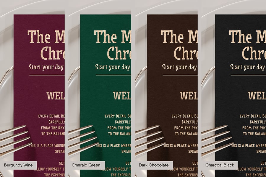 专业餐厅卡片样机,逼真烫金和压纹效果。完美适用于桌卡、菜单、欢迎卡和高端餐饮品牌推广。包含两种卡片尺寸:85×55毫米和100×210毫米。简洁清爽的设计,适用于高端酒店餐饮项目。