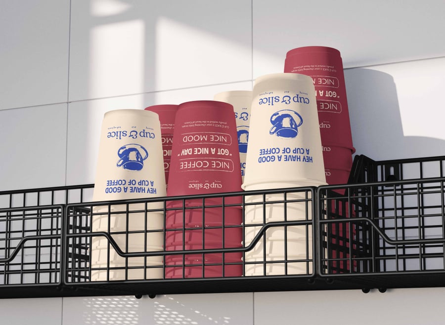 堆叠起来——这款易于编辑的杯子模型采用低角度设计,画面干净利落,旨在营造吸引人的咖啡馆氛围。