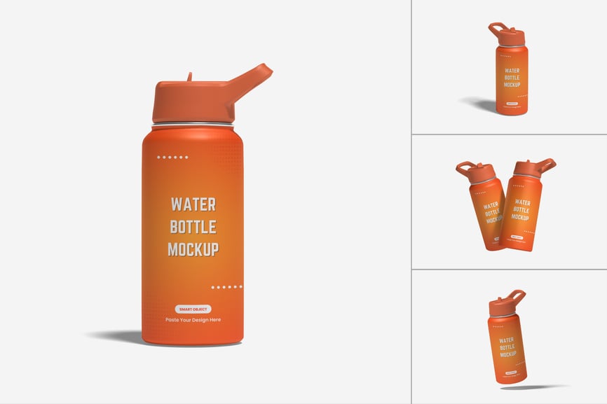 高品质水瓶样机,采用分层 PSD 文件格式,可清晰、逼真、专业地展示您的设计。此样机文件使用智能对象功能,让您只需几秒即可更改设计(附带 PDF 说明)。