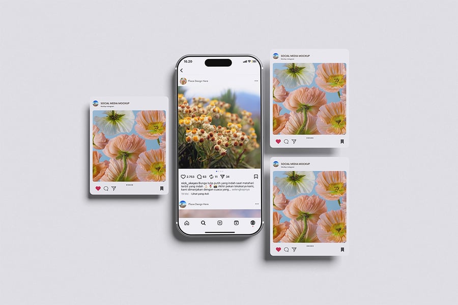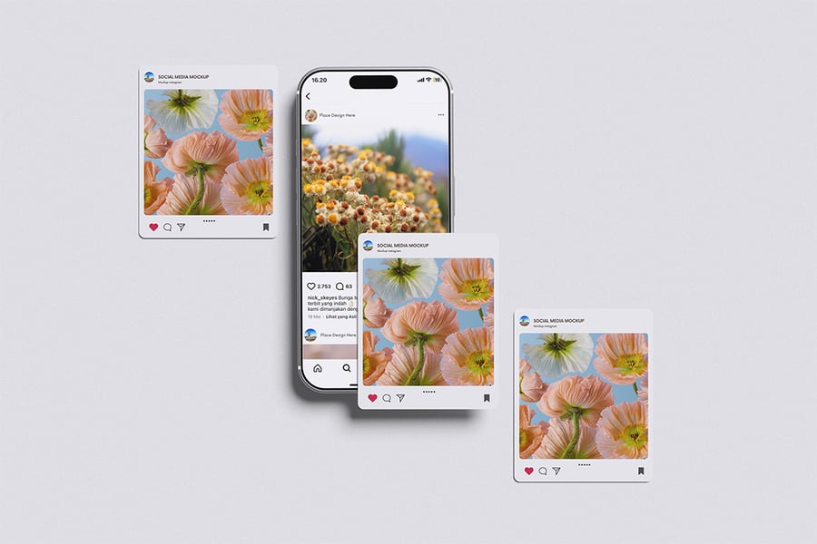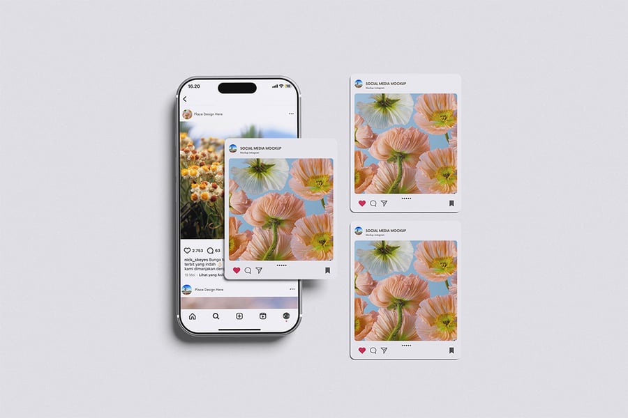 用这些精美的素材样机展示您高质量的 Instagram 社交媒体样机设计。此样机包含 4 个元素,并配有分层清晰的 PSD 文件。此外,此样机还采用了智能对象功能,这意味着您只需几秒钟即可轻松快捷地将当前设计替换为您自己的设计。