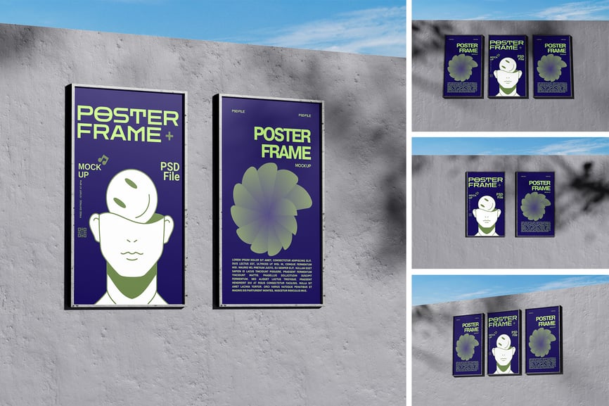 用这些精美的样机展示您的相框样机设计。此样机包含 4 个元素,并提供分层清晰的 PSD 文件。此外,此样机还采用了智能对象功能,这意味着您只需几秒钟即可轻松快捷地将当前设计替换为您自己的设计。