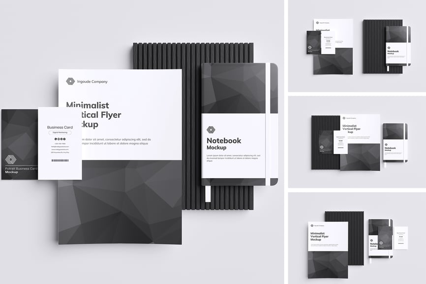 此模型包含 4 个项目,采用分层良好的 PSD 文件,并且此模型还使用了智能对象功能,这意味着您可以在几秒钟内轻松快速地将当前设计替换为您自己的设计。