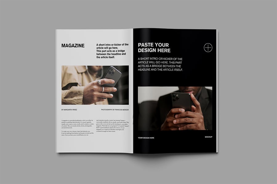我们提供杂志样机,以逼真的方式展示您的设计。这是一个 Photoshop 文件,采用分层设计,并利用智能对象功能进行编辑。它易于编辑,节省您的时间。只需双击智能对象的图层缩略图,即可在新文档中打开,然后将您的设计粘贴到其中并保存即可。