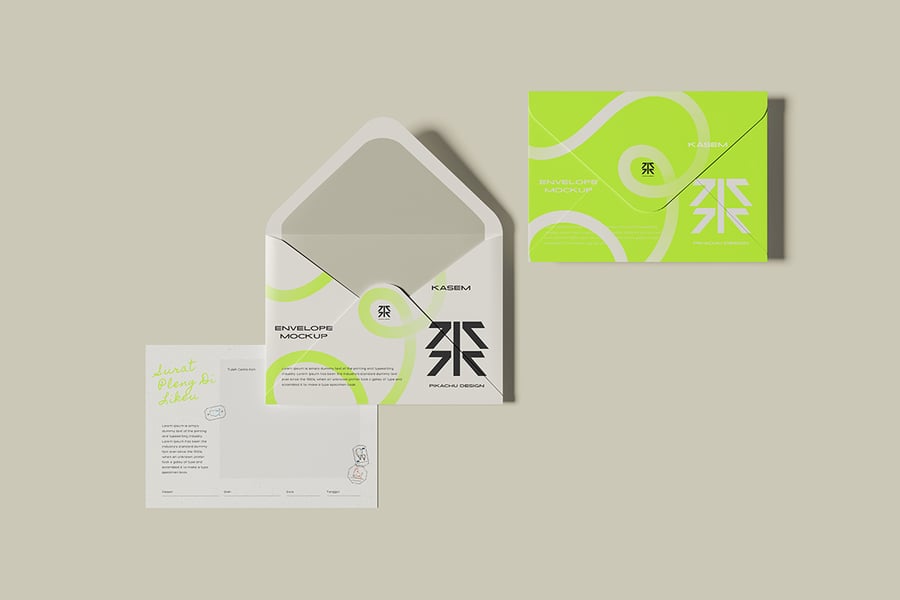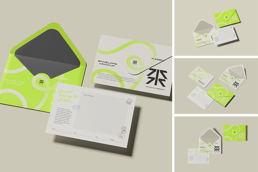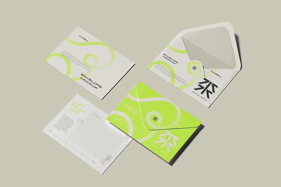 用这些精美的样机展示您的信封模型。此样机包含 4 个元素,并提供分层清晰的 PSD 文件。此外,此样机还采用了智能对象功能,这意味着您只需几秒钟即可轻松快捷地将当前设计替换为您自己的设计。