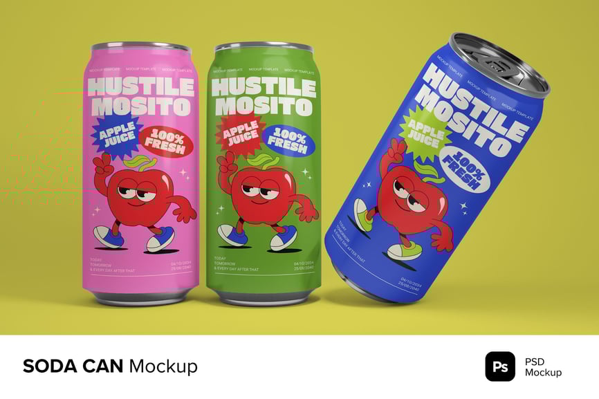 此产品包含三个高质量的汽水罐模型,可帮助您专业地展示您的设计。您可以使用 Photoshop 的 PSD 格式和智能对象功能,在几秒钟内将现有设计替换为您自己的设计。