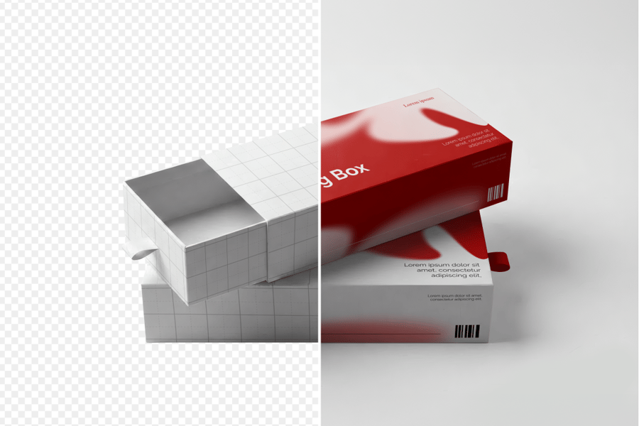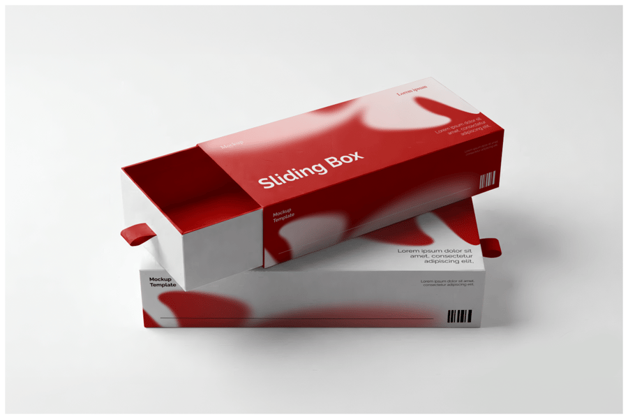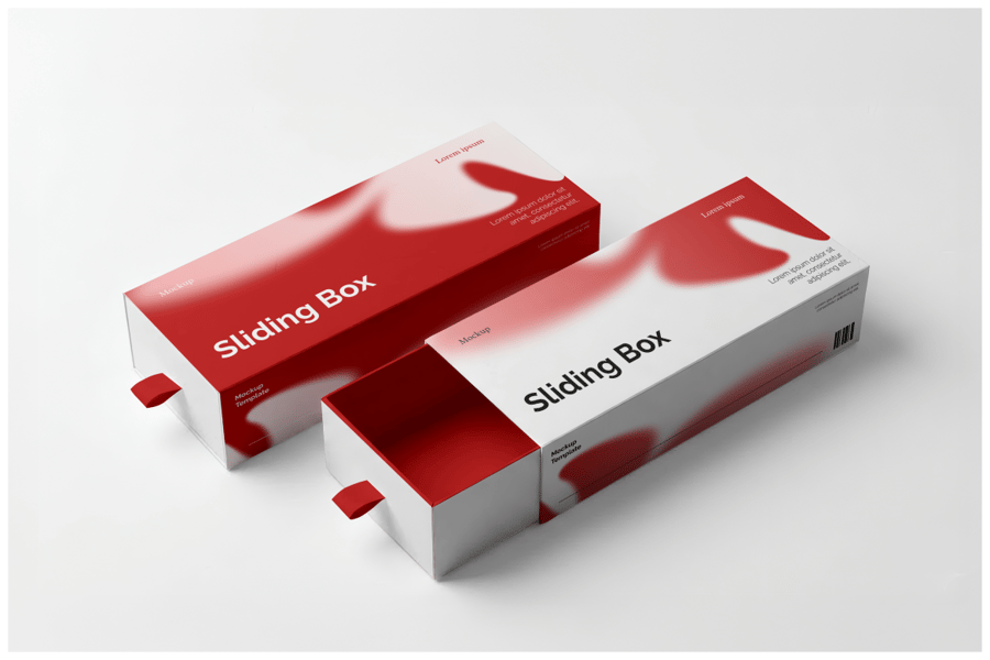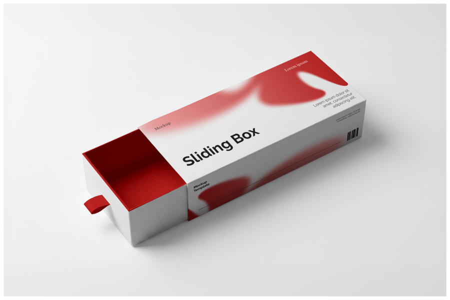 这款滑动盒模型套装采用逼真的矩形抽屉式纸质包装,专为简洁现代的品牌展示而设计。
