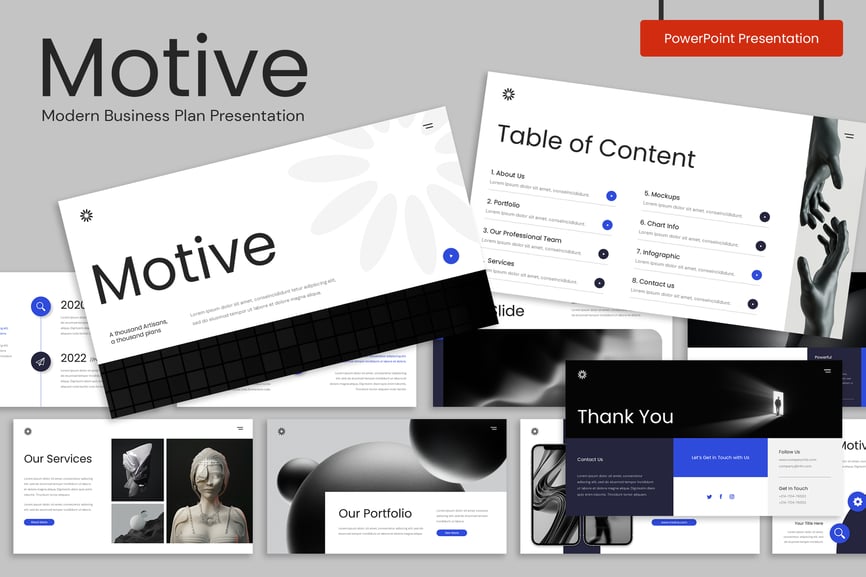 隆重推出 Motive – 现代商业计划 PowerPoint 演示模板