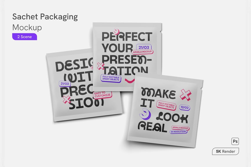 这款逼真的小袋包装模型可完美展示您的产品设计,以紧凑灵活的形式呈现徽标、标签或品牌信息。是食品、化妆品或保健品包装展示的理想之选。