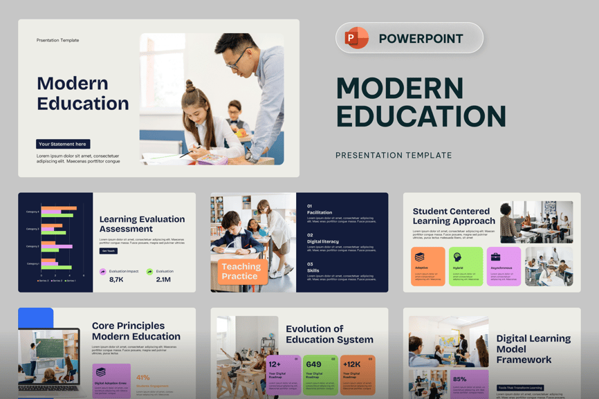 **现代教育 PowerPoint** – 创新学习学术培训项目专业演示模板