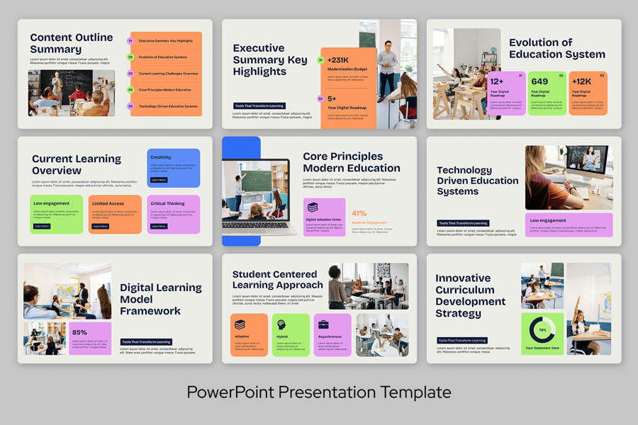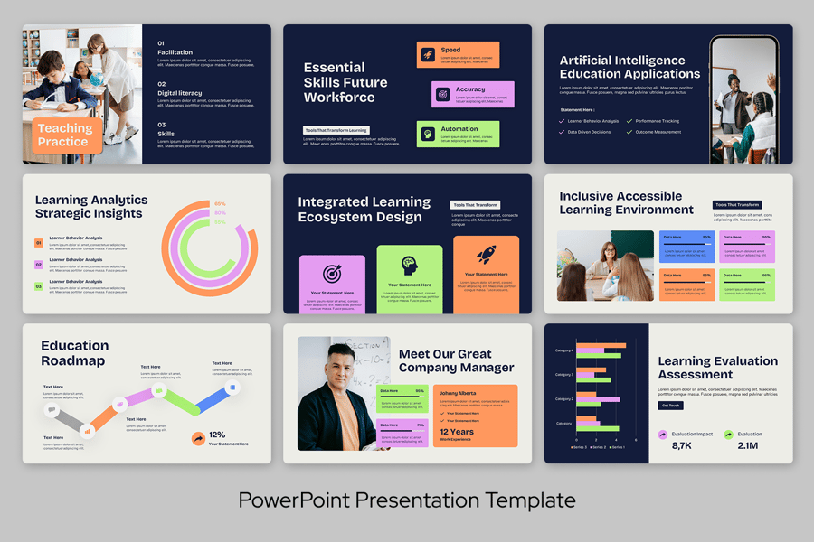 该模板有助于创建动态的学习演示文稿,同时保持专业性和清晰度。