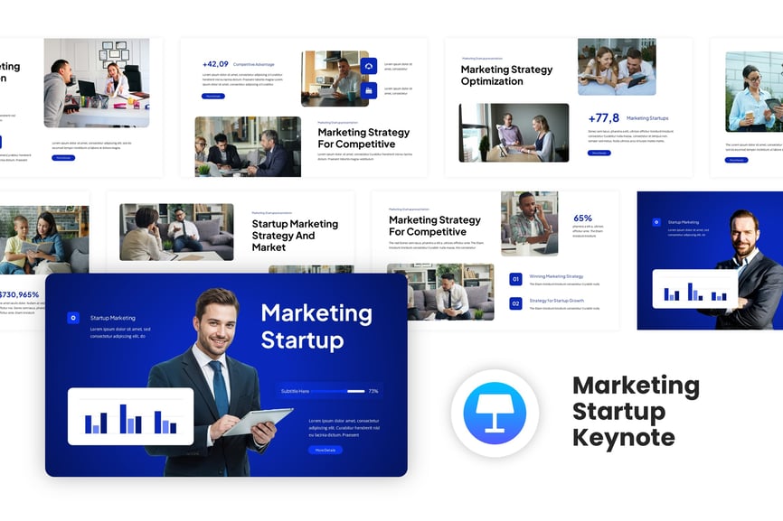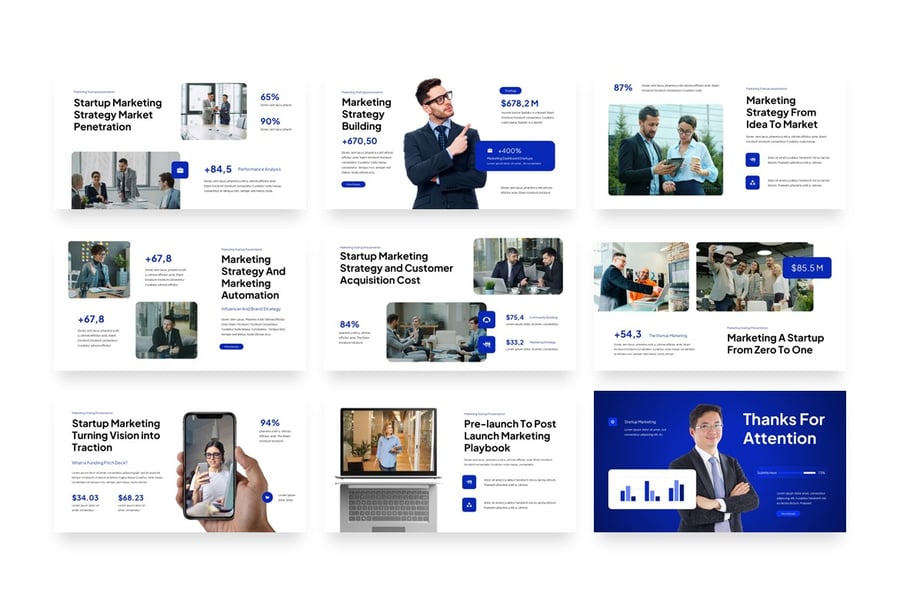 **营销创业公司主题演讲模板**,采用创意主题。此模板不仅方便您进行演示,还提供多种主题和用途选择,并允许您更改文本、图像和颜色。