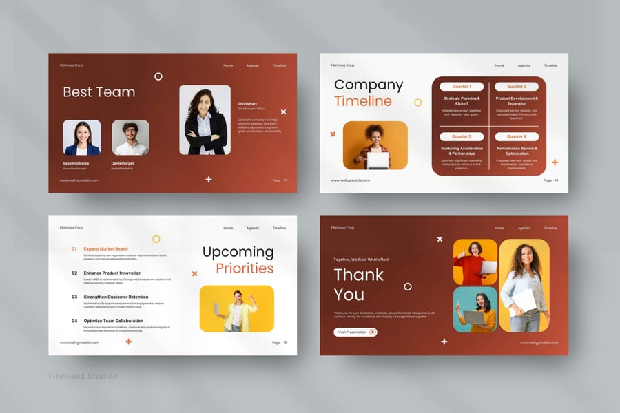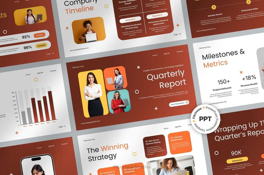 **棕橙色现代专业季度业绩及战略报告 PowerPoint 模板**