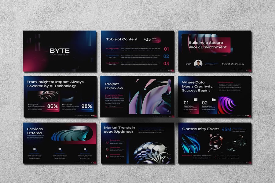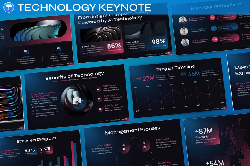 这款技术主题演讲模板旨在帮助领导者、创新者和创意团队以更具影响力的方式呈现技术理念。该模板专为 Apple Keynote 设计,强调清晰度、流畅性和故事性,让您能够以精致专业的语气展示复杂的数字概念。它非常适合高管简报、创新提案和战略讨论等高级别演示,能够将技术洞见转化为引人入胜的信息,从而与愿景、战略和未来发展保持一致。