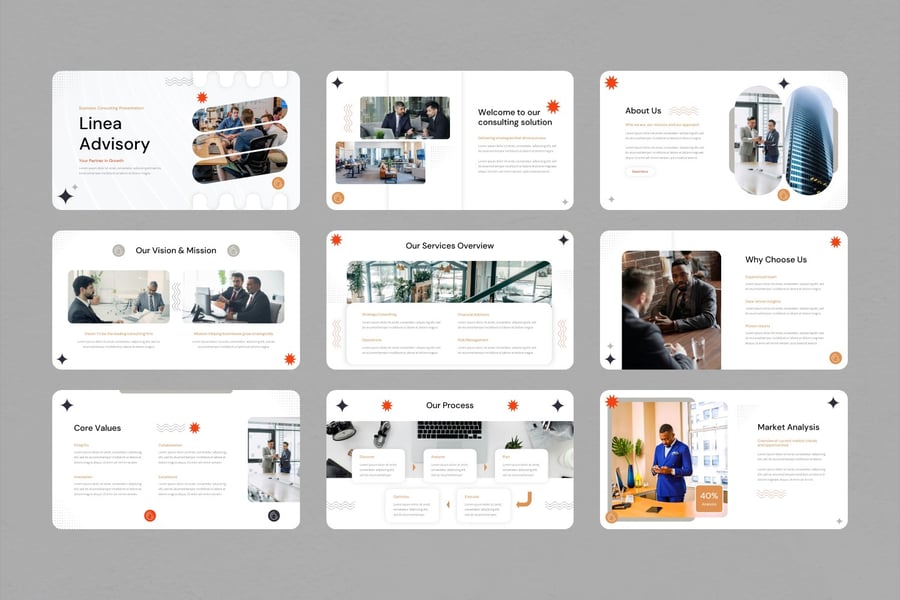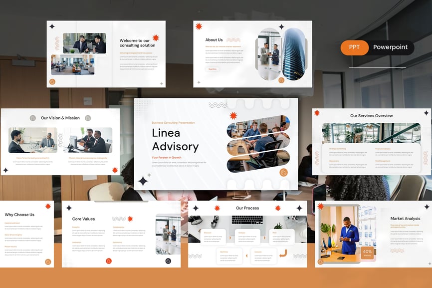 隆重推出 **Linea 商业咨询 PowerPoint 模板**