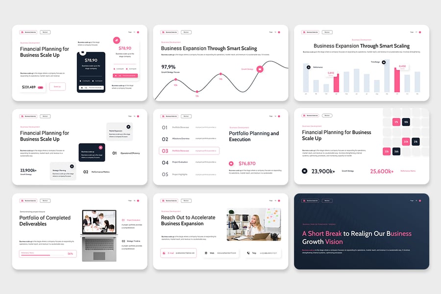 使用“业务规模化演示模板”释放您的业务潜力——这是一套精心制作、完全可编辑的 PowerPoint、Keynote 和 Google Slides 幻灯片,旨在提升您的品牌叙事,给利益相关者留下深刻印象,并推动实际成果。