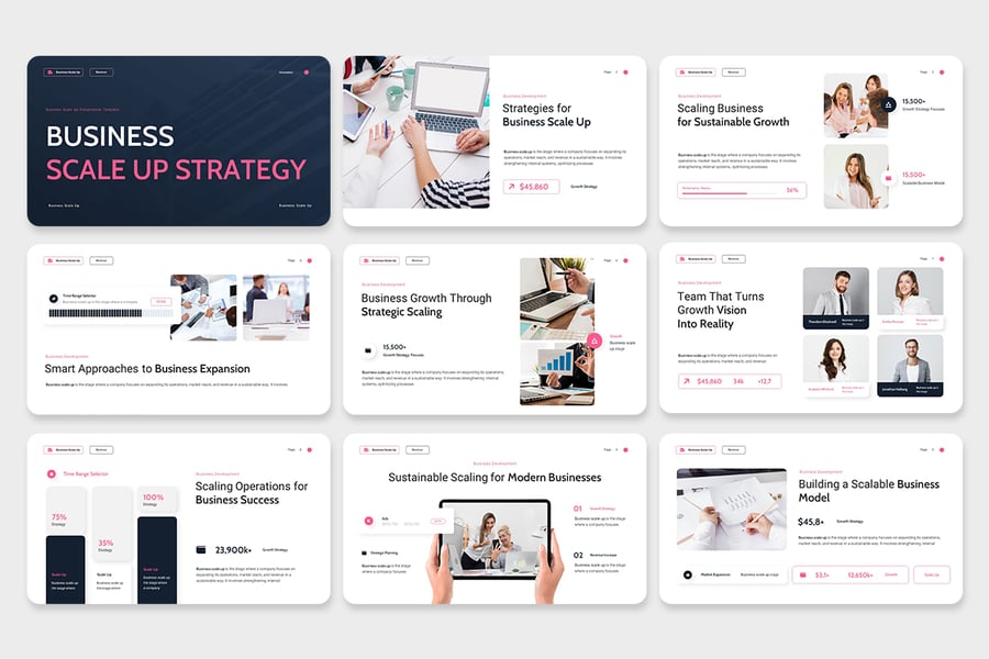 使用“业务规模化演示模板”释放您的业务潜力——这是一套精心制作、完全可编辑的 PowerPoint、Keynote 和 Google Slides 幻灯片,旨在提升您的品牌叙事,给利益相关者留下深刻印象,并推动实际成果。