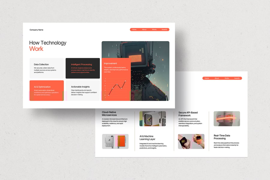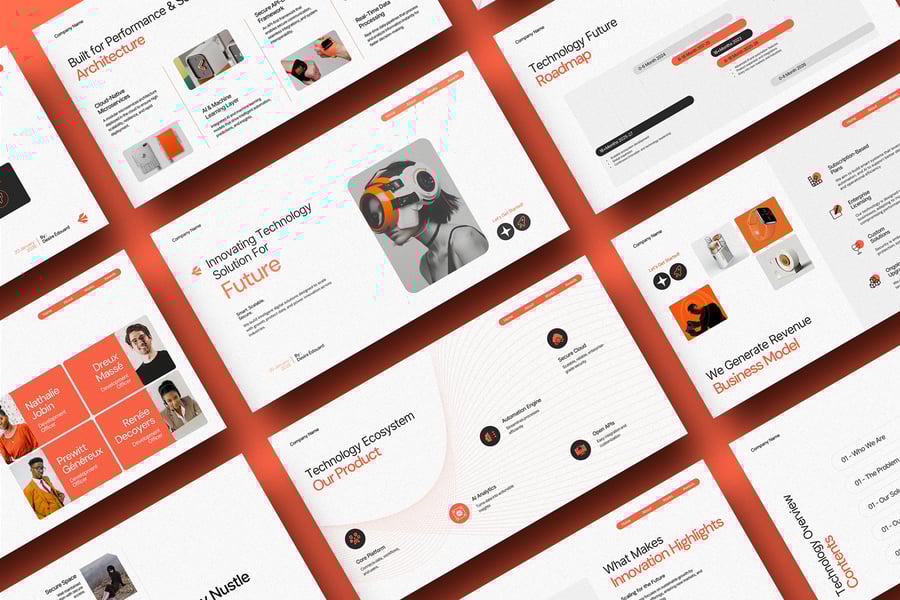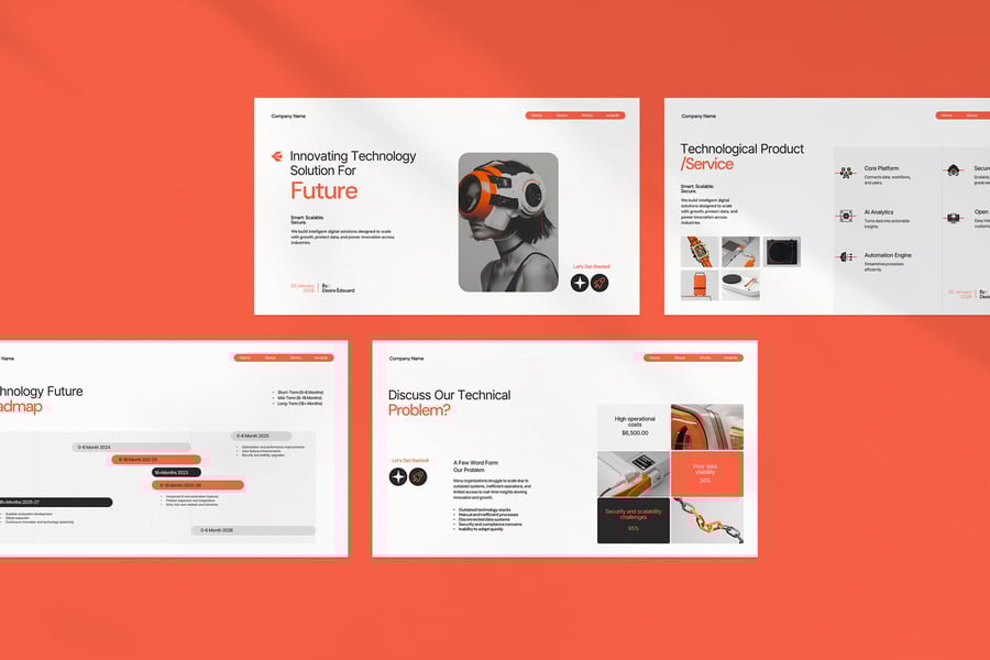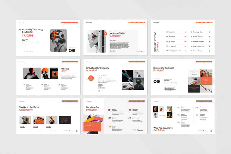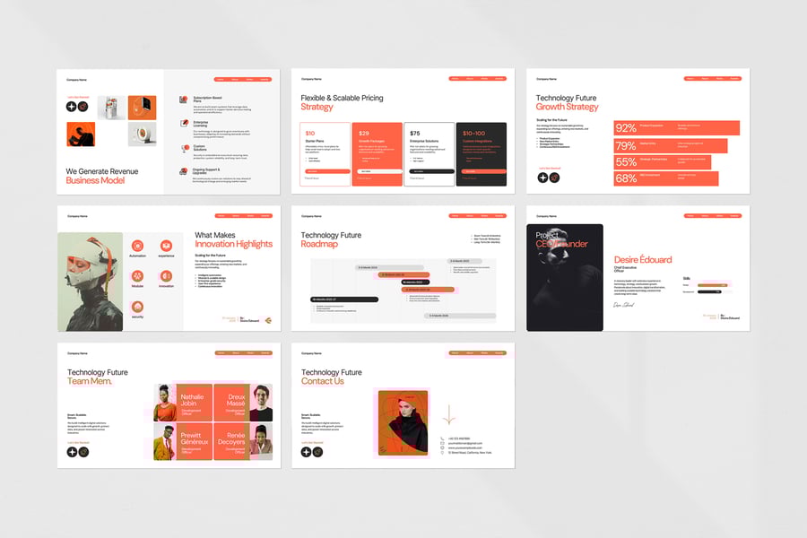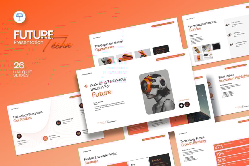 使用未来科技演示模板,以专业、简洁的方式展示您的作品。这款模板设计简约现代,功能强大,包含创意照片布局、信息图表、表格、矢量图标、示意图以及众多实用功能,助您将作品和公司形象提升至全新高度。
