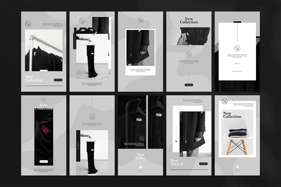 此套装包含 10 个可直接使用的 Instagram 快拍模板,您可以完全编辑这些模板。颜色、字体和所有其他元素均可根据您的需求进行自定义。适用于时尚博主、Instagram 模特、时尚品牌等
