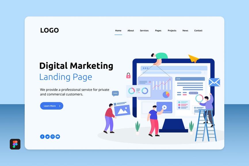 **Dimar** 数字营销扁平化设计概念,适用于落地页。现代扁平化矢量插图,适用于网页、移动设备、主图和用户界面。易于编辑和自定义。