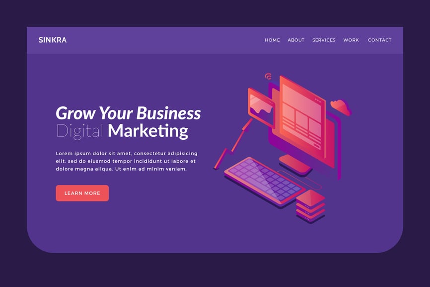 Sinkra – 英雄横幅模板 RS / 14 分前 Ui Kits 1 0 0 **特征** * 包含 .PSD 文件 * 独特设计 * 可编辑颜色和文本 * 100% 矢量图 * 易于更改颜色和文本 * 帮助文件中包含免费字体链接。