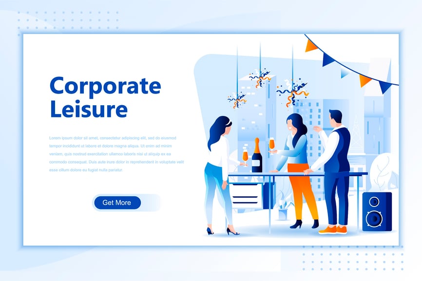 企业休闲类扁平化网页设计模板,包含首页或页眉图片,以人物形象为主题,适用于网站和移动网站开发。扁平化着陆页模板。矢量图。