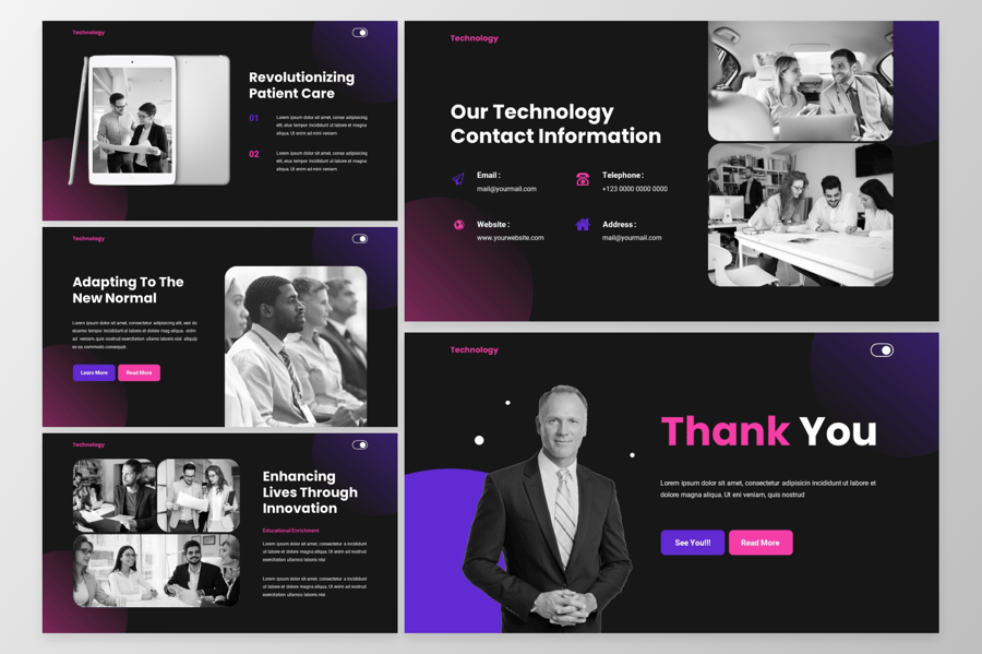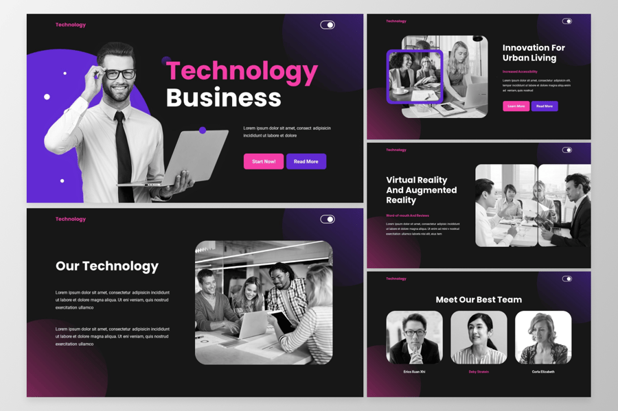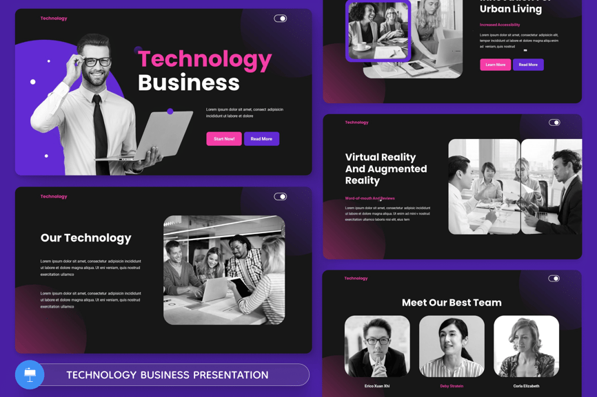 这款科技商务演示模板以简洁明了为核心设计理念,适用于各种演示需求。模板采用清晰的布局、均衡的间距和精致的字体,帮助您突出内容,避免不必要的视觉干扰。