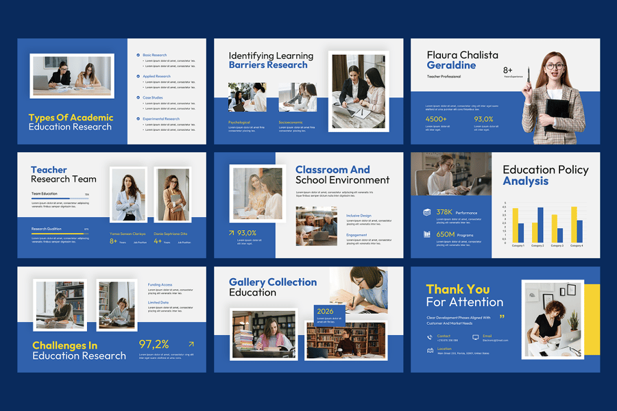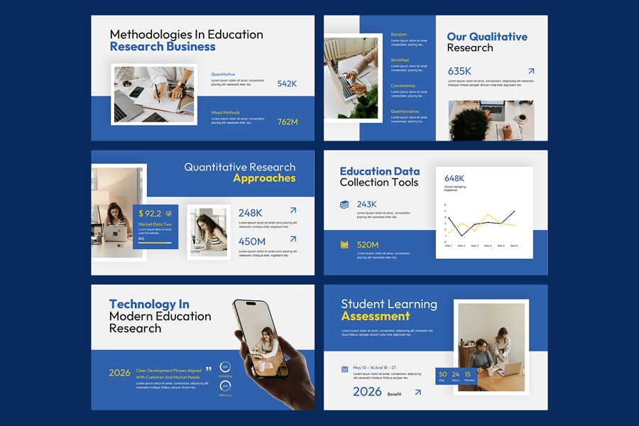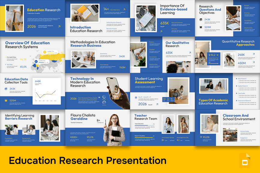 使用**教育研究谷歌幻灯片**提升您的演示效果。此模板专为在学术或教育领域交流研究成果、方法和见解而设计。它能帮助教育工作者、研究人员和学生以结构化、专业且引人入胜的方式呈现复杂信息,使观众更容易理解目标、过程和结果。此模板非常适合研讨会、论文答辩、学术会议和课堂演示。它完美适用于教育研究演示、学术研究幻灯片、论文演示模板、研究成果演示、学术模板、研究演示、学校项目幻灯片、数据分析教育演示文稿、教育研究报告、定量研究、定性研究、案例研究、课程评估和项目报告。