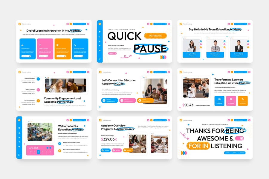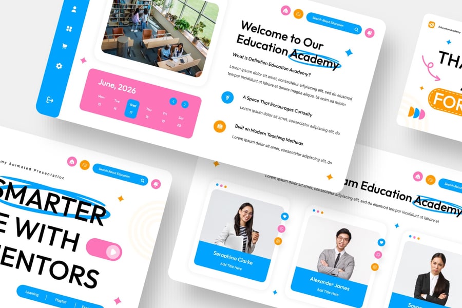 大家好!这是一个**教育学院动画主题演讲模板**,它采用现代且用户友好的设计,为您的演示文稿增添创意和编辑功能。模板包含易于自定义的颜色和字体,方便您根据自身需求进行调整。**立即下载此模板!**