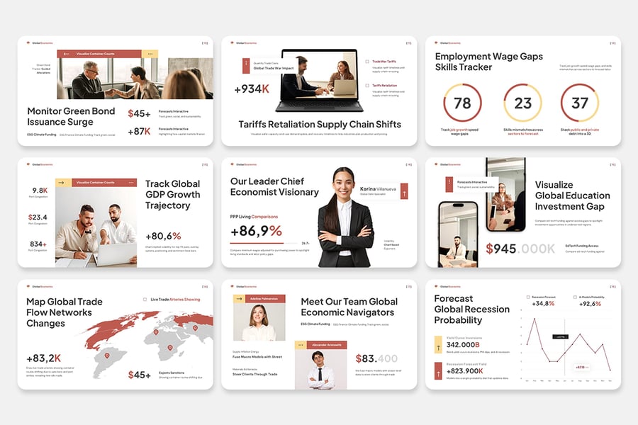 **全球经济演示** 非常适合各种专业和个人用途,包括演示文稿、营销策略、产品组合、公司简介、年度报告、最终项目和个人作品集,可无缝适应您的用途。
